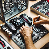 Professional installation of new components including GPUs, RAM, storage drives, and cooling systems.